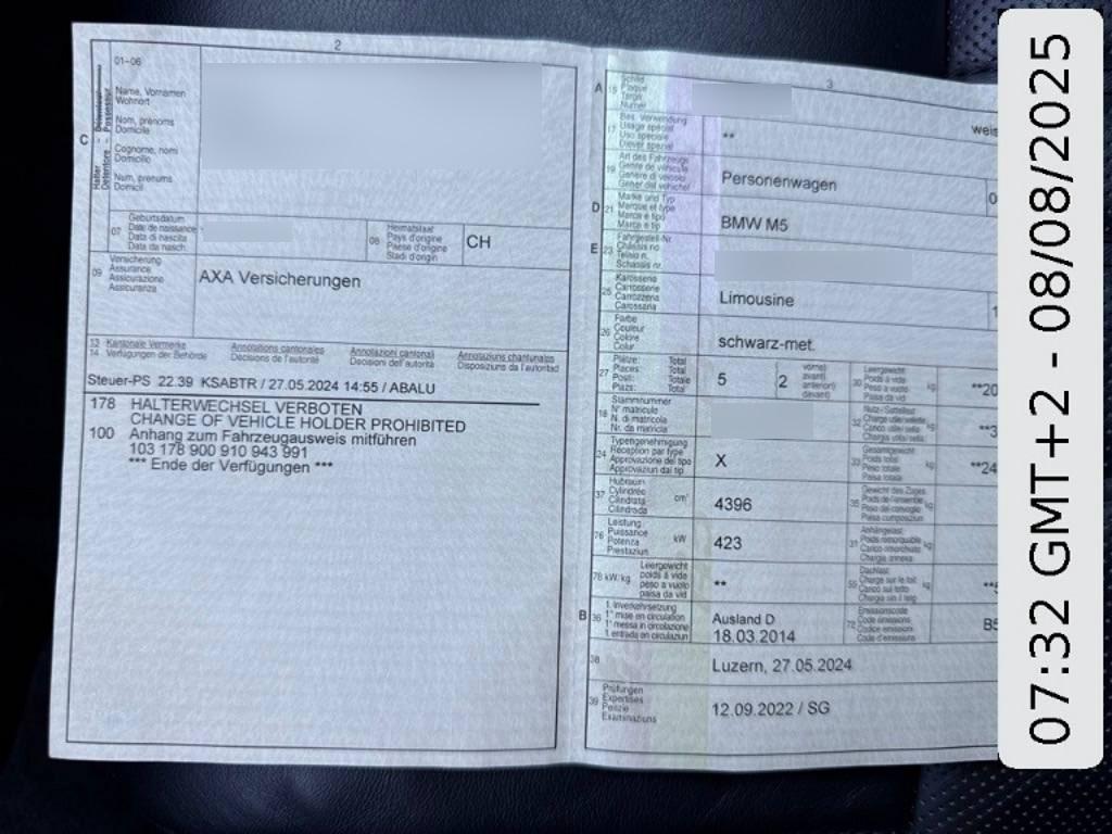 | Fahrzeugausweis | Vorhanden |